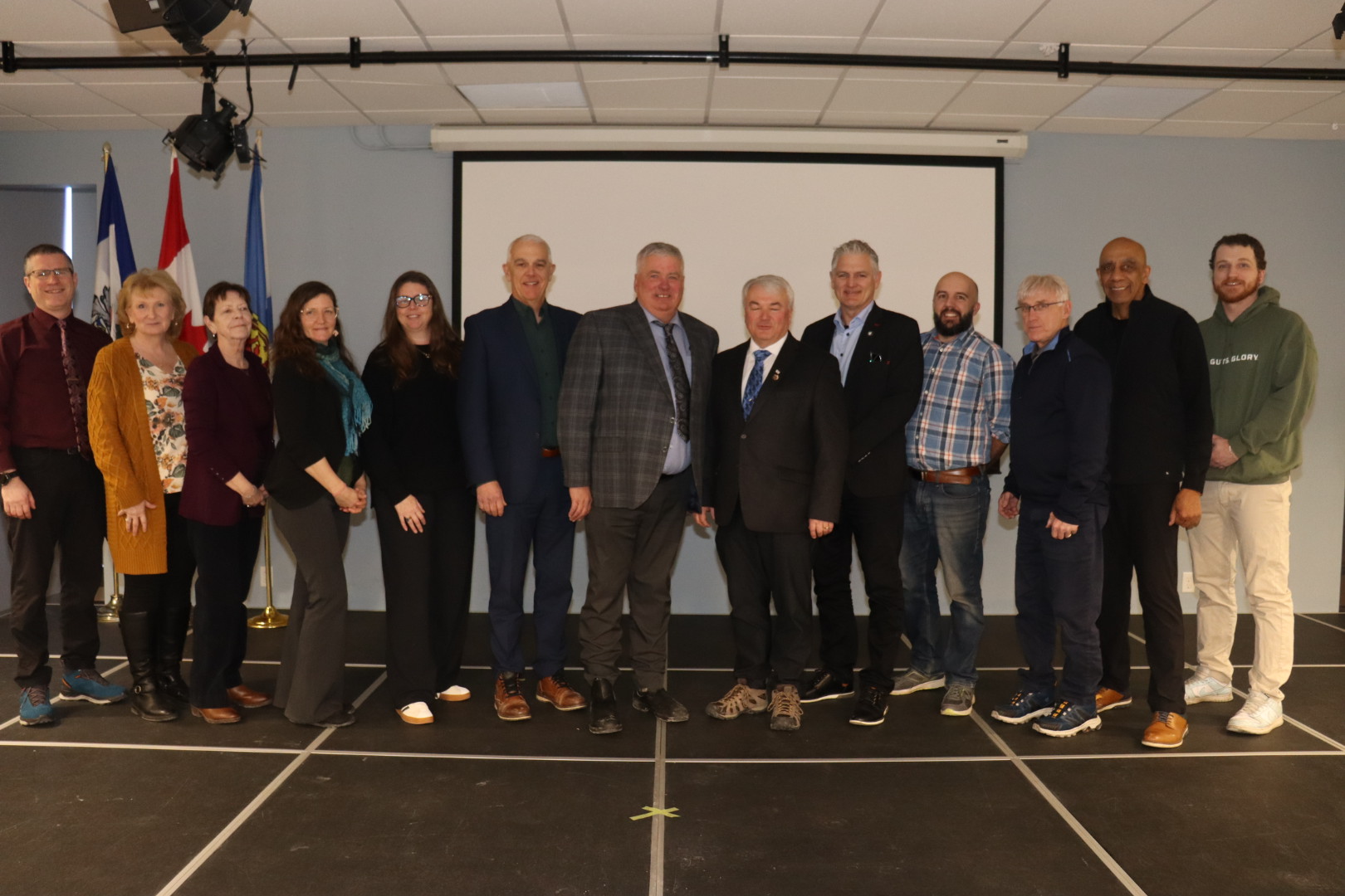 Council members from the Municipality of Cumberland and CAO Greg Herrett are joined by members of Amherst Town Council and CAO Jason MacDonald following the approved second reading by both municipal units of by-law amendments to complete the implementation of an Intermunicipal Agreement signed back in October of 2024.