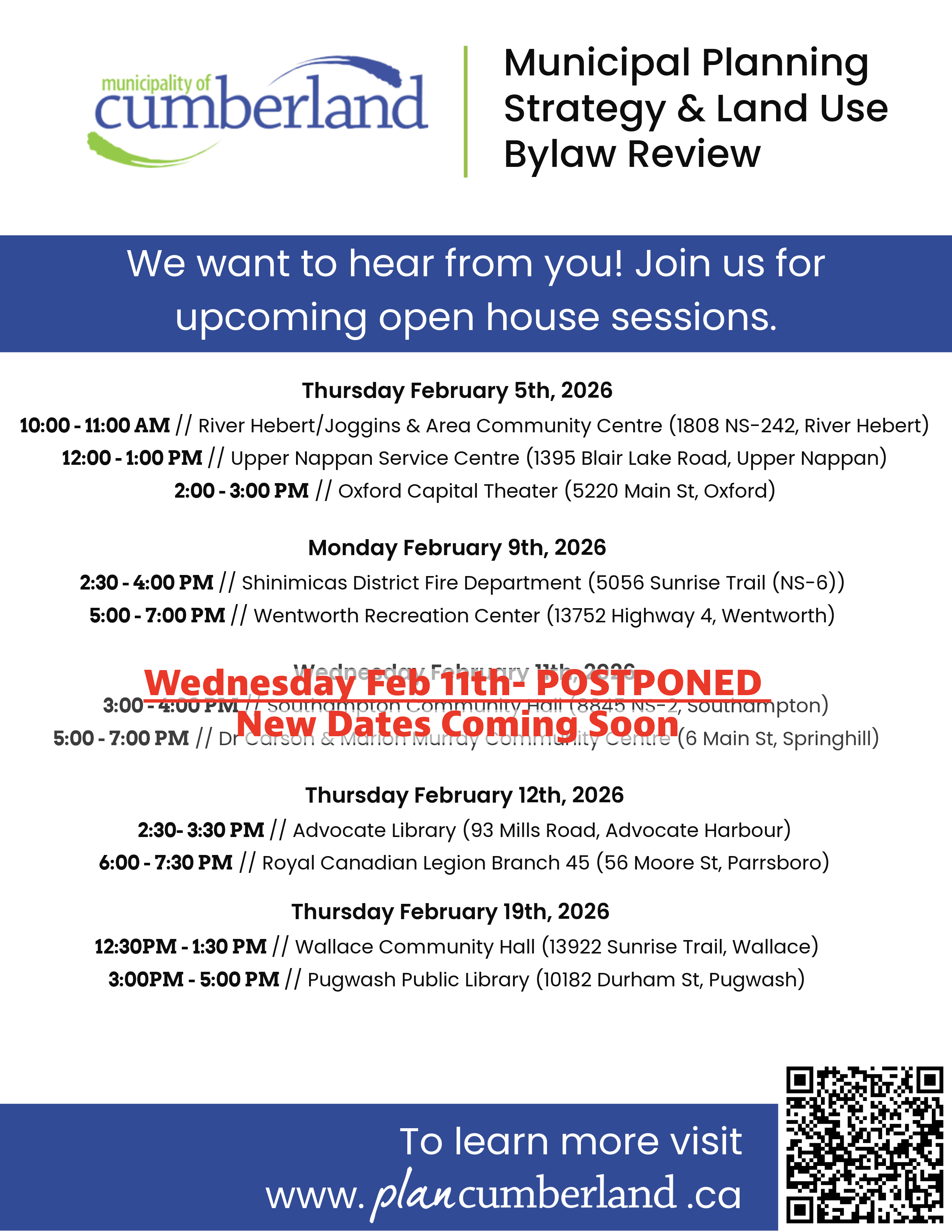 The Municipality of the County of Cumberland is updating its Municipal Planning Strategy and Land Use Bylaw and this is your chance to help shape how our communities grow and change.